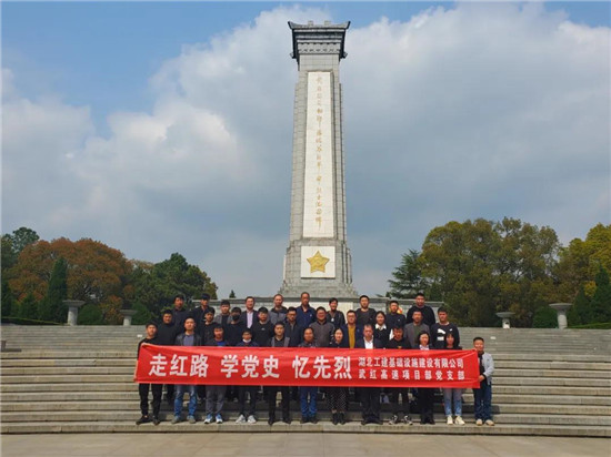當(dāng)天下午,武紅高速項目黨支部組織黨員、團(tuán)員和部分員工赴紅安縣紅色革命教育基地開展“走紅路、學(xué)黨史、憶先烈”主題黨日活動。在黃麻起義和鄂豫皖蘇區(qū)革命烈士紀(jì)念碑前,全體同志列隊肅立,向革命烈士及先輩鞠躬致敬,表達(dá)對革命烈士及先輩的深切悼念與崇高敬意。